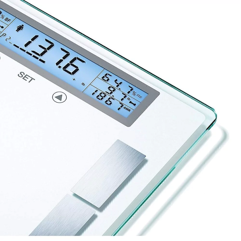La Balanza Diagnóstica Beurer BG 51 XXL te ofrece un análisis detallado de tu cuerpo con un diseño moderno y resistente. Su superficie de vidrio extragrande de 8 mm de grosor y su capacidad de carga de hasta 200 kg la hacen ideal para cualquier usuario, incluyendo personas con obesidad. Su pantalla con indicación múltiple te permite visualizar todos los valores fácilmente.