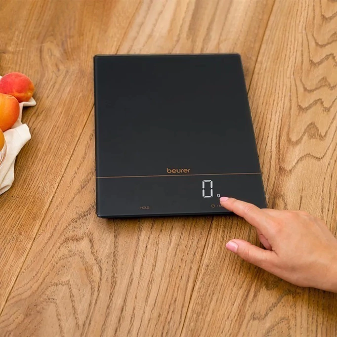 La balanza de cocina no solo seduce por su elegante diseño, sino también por su pantalla LED Magic, que solo aparece durante la medición. Su gran capacidad de carga hace que esta balanza sea un accesorio especialmente práctico para la cocina.